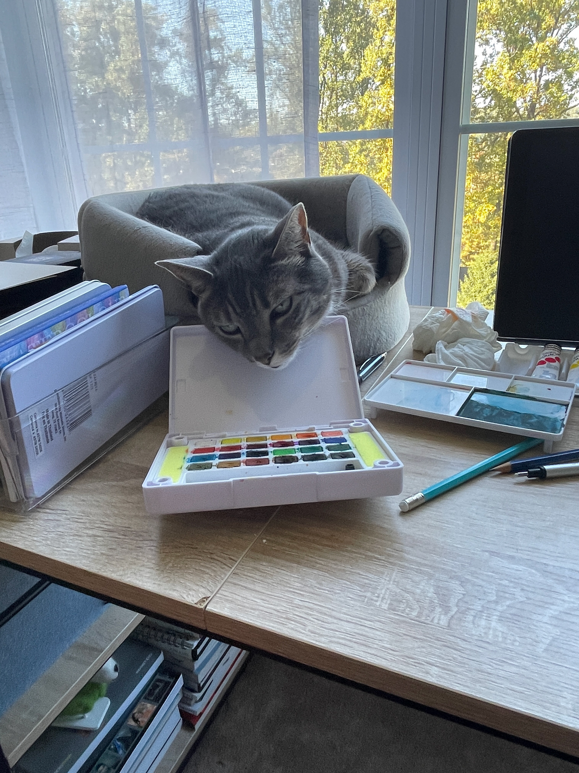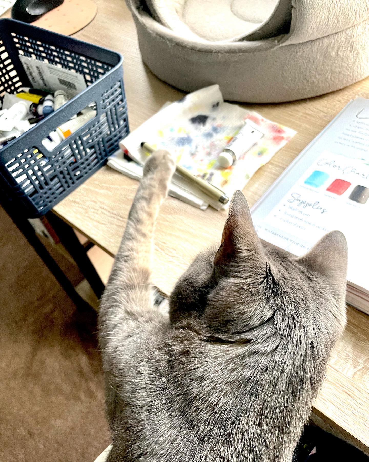 I have 2 fur balls running around my house, but Sam is my most curious. He loves to lay in his bed while I paint. But he also loves to "help out" as he can.